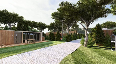 Exemple : Emplacement de 140m² environ + chalet RE2020 possible de 37m² environ de surface de plancher, utilisable clé en main meublé + terrasse 20m² environ + stationnement, dans résidence fermée avec piscine à partir de : 161 475 euros.